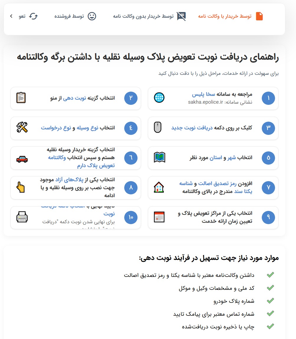راهنمای دریافت نوبت تعویض پلاک وسیله نقلیه با داشتن برگه وکالتنامه